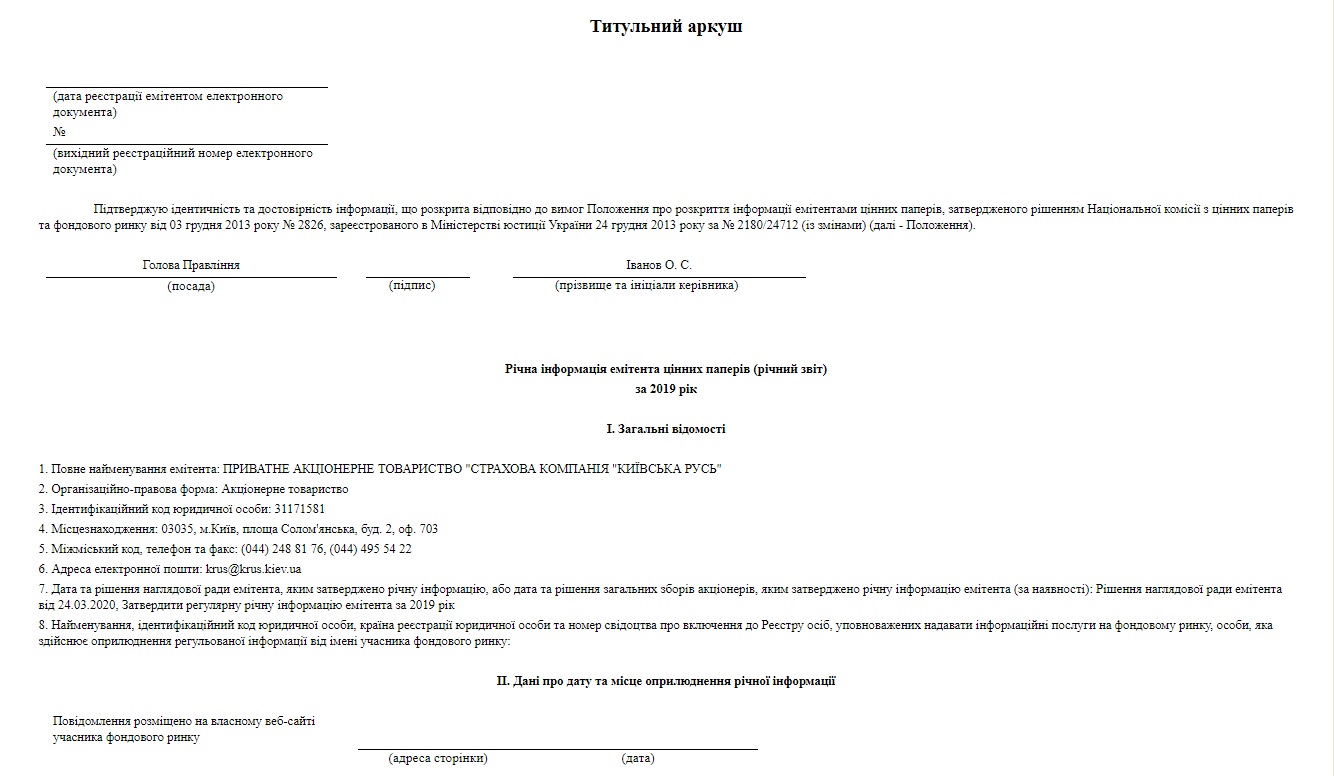 1. Повне найменування емітента: ПРИВАТНЕ АКЦIОНЕРНЕ ТОВАРИСТВО "СТРАХОВА КОМПАНIЯ "КИЇВСЬКА РУСЬ"